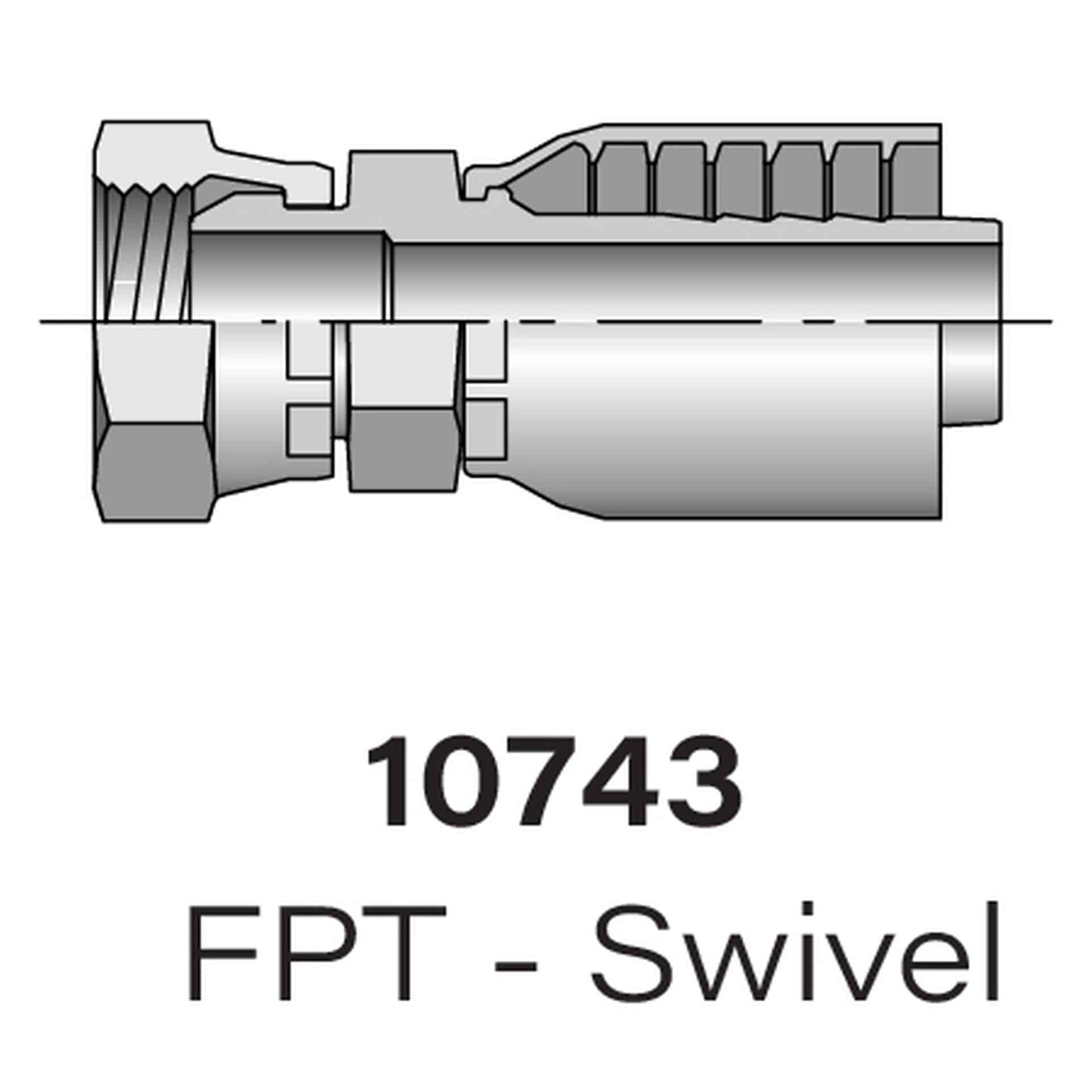 The Heavy Duty Parker Series 10743 FPT Swivel to Hydraulic Hose Fitting, available in sizes #2-#20, offers a secure, high-performance connection for hydraulic systems. Designed for flexibility and durability, it provides reliable, leak-free operation, making it ideal for a variety of industrial and agricultural applications.