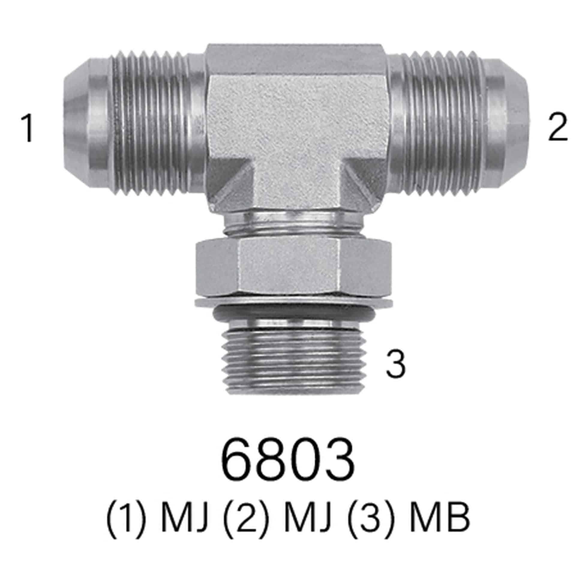 Hydraulic Tee, Series 6803, MJ to MJ to MB, Sizes #4 – #20